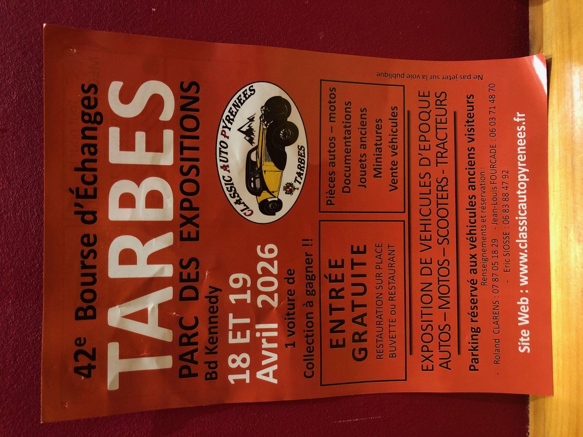 L'association Classic Auto Pyrénées organise sa 42ème bourse d'échange les 18 et 19 avril 2026. Le club 104 Peugeot tiendra un stand sur tout le week-end. Venez nous rencontrer et échanger avec nos membres.